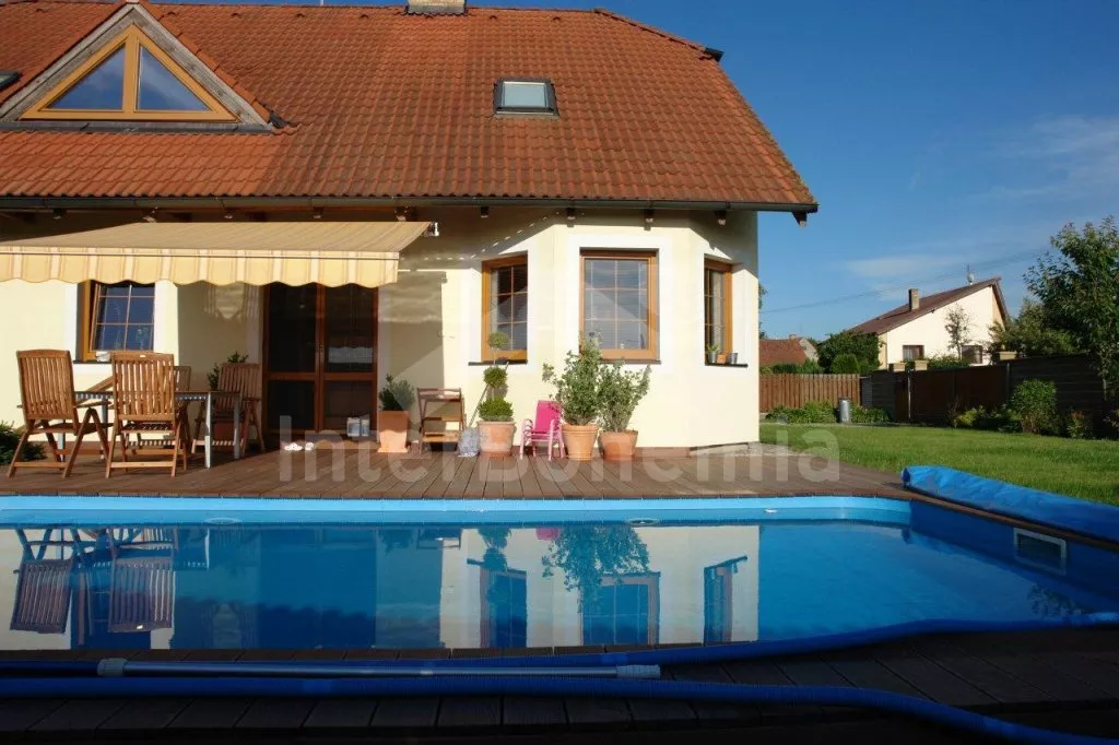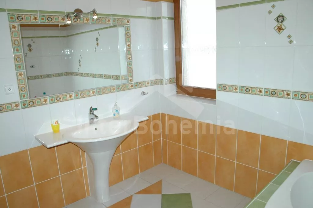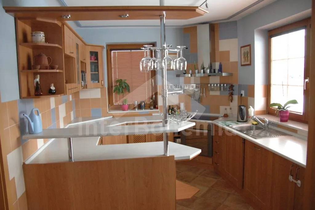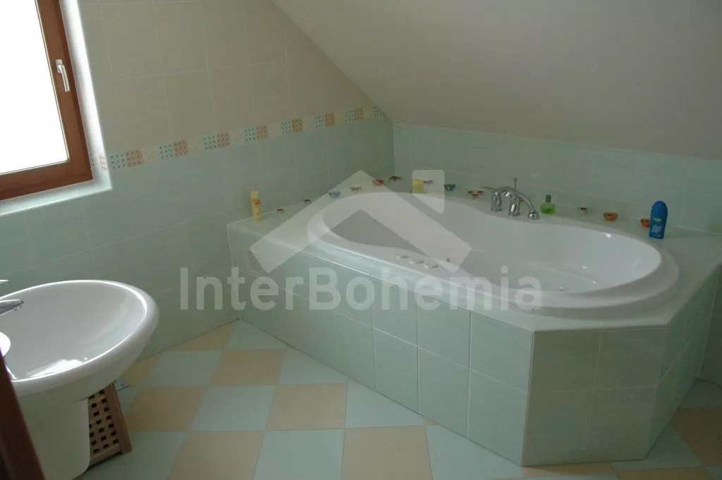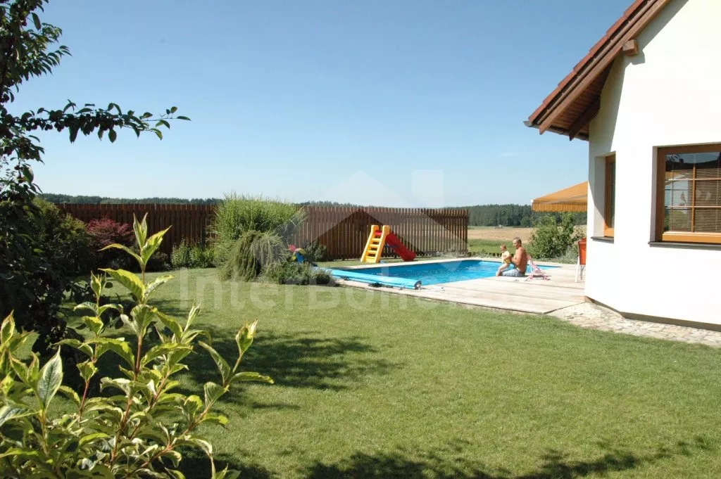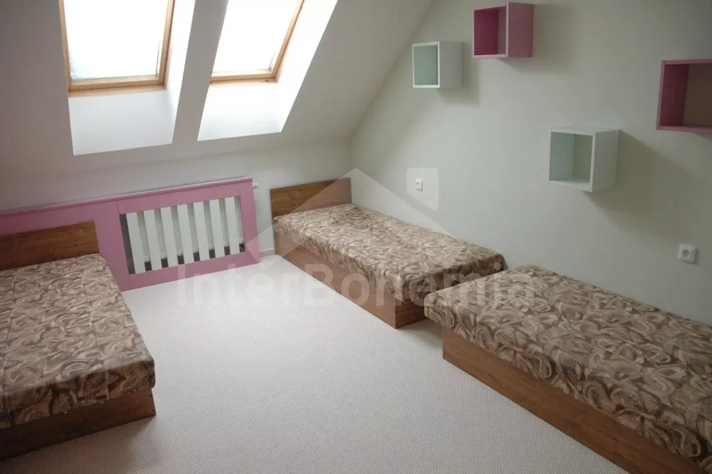 Volně stojící, velmi luxusní vila, v roce 2005 nově postavená, hezky a pohodlně zařízená, vybavená veškerým komfortem. Vstup, hala, prostorný obývací pokoj se sedací soupravou, kachlovými kamny, jídelním stolem, televizí se satelitním příjmem a DVD a dveřmi na terasu. Moderní kuchyně s elektrickým sporákem s keramickou varnou deskou a horkovzdušnou troubou, lednicí s mrazákem, kávovarem, varnou konvicí, mikrovlnnou troubou a myčkou na nádobí. Hezká koupelna s vanou a sprchou. Samostatná toaleta. Ložnice s dvojlůžkem. V patře se nachází hala s dětským koutkem (hernou) a vstupem na balkón. Druhá koupelna s vanou, druhá samostatná toaleta a tři ložnice – dvě každá s jedním dvojlůžkem a jedna se třemi samostatými lůžky. V suterénu domu se nachází prádelna. Eletrické ústřední topení, částečně podlahové. Prostorná zahrada je oplocená vysokým plotem, což zaručuje naprosté soukromí. Vjezd na pozemek opatřen automatickou bránou. K dispozici je dřevěná terasa s zahradním nábytkem, markýzou, bazénem 7 x 3,5 m a přenosný zahradní gril. Garáž a vlastní parkoviště.