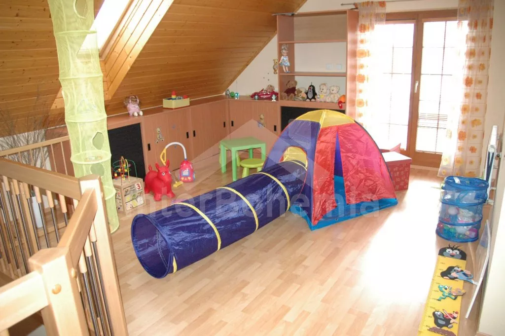 Volně stojící, velmi luxusní vila, v roce 2005 nově postavená, hezky a pohodlně zařízená, vybavená veškerým komfortem. Vstup, hala, prostorný obývací pokoj se sedací soupravou, kachlovými kamny,… Více informací