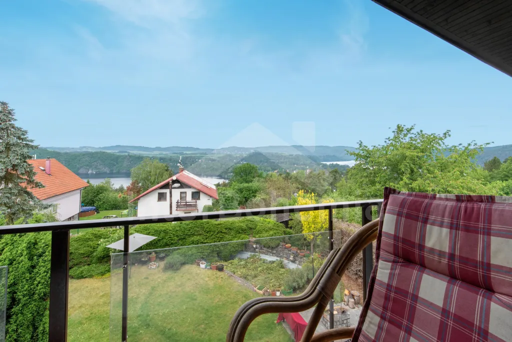 In centraal Bohemen, aan de rand van een vakantienederzetting, behorende bij het recreatie plaatsje Merin, ca 35 km ten zuiden van Praag. Fantastisch gelegen, op een helling, en nabij het recreatie stuwmeer Slapy. Vanaf uw villa heeft u prachtig weids uitzicht over het dal met het grote stuwmeer en daarachter de beboste heuvels. De ligging is werkelijk subliem, met vele sportmogelijkheden en verscheidene faciliteiten in de directe omgeving en bovendien mooie en interessante uitstapjes. Jachtkasteel Konopiste 16 km, kasteel Sedlcany 26 km, kasteel Vrchotovy janovice 21 km. Tot 50 km vindt u de beroemde burcht Karlstejn met een prachtige golfbaan, Koneprusy druipsteen grotten, kasteel Horovice, klooster Svata Hora nabij Pribram en nog veel meer. Ook een bezoek aan Praag mag niet aan uw programma ontbreken!