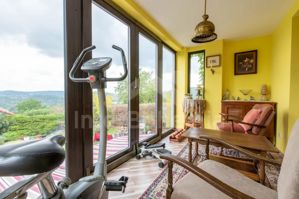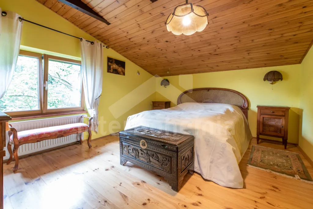 Vrijstaande villa met luxueuze inrichting, comfortabel en voorzien van alle gemakken. Entrée, hal, woonkamer met zithoek, satelliet TV en serre met een heerlijk uitzicht over het dal van het stuwmeer. Luxe keuken met een driezitter, eettafel en o.a. keramische kookplaat, vaatwasser, magnetron en waterkoker. Toilet. Boven is een luxe badkamer met douchekabine en toilet, slaapkamer met een tweepersoons bed en een extra bed, slaapkamer met twee éénpersoons bedden, zitje, uitklapbaar tot tweepersoons bed en PC met internet aansluiting, en een slaapkamer met een tweepersoons bed. In het souterrain vindt u een zwembad 3 x 2,5 m (zwembad is niet verwarmd), douche, sauna, wasruimte, toilet. Woonhal met tafel en stoelen, satelliet TV met DVD en stereo, tafelvoetbal, biljart en toegang tot het terras en de tuin. Kolenverwarming. De ruime tuin is omheind, u beschikt over tuinmeubelen, tuinhaard, kampvuurplaats, schommelbank. Voldoende eigen parkeerruimte – parkeerplaats voor 4 auto´s.