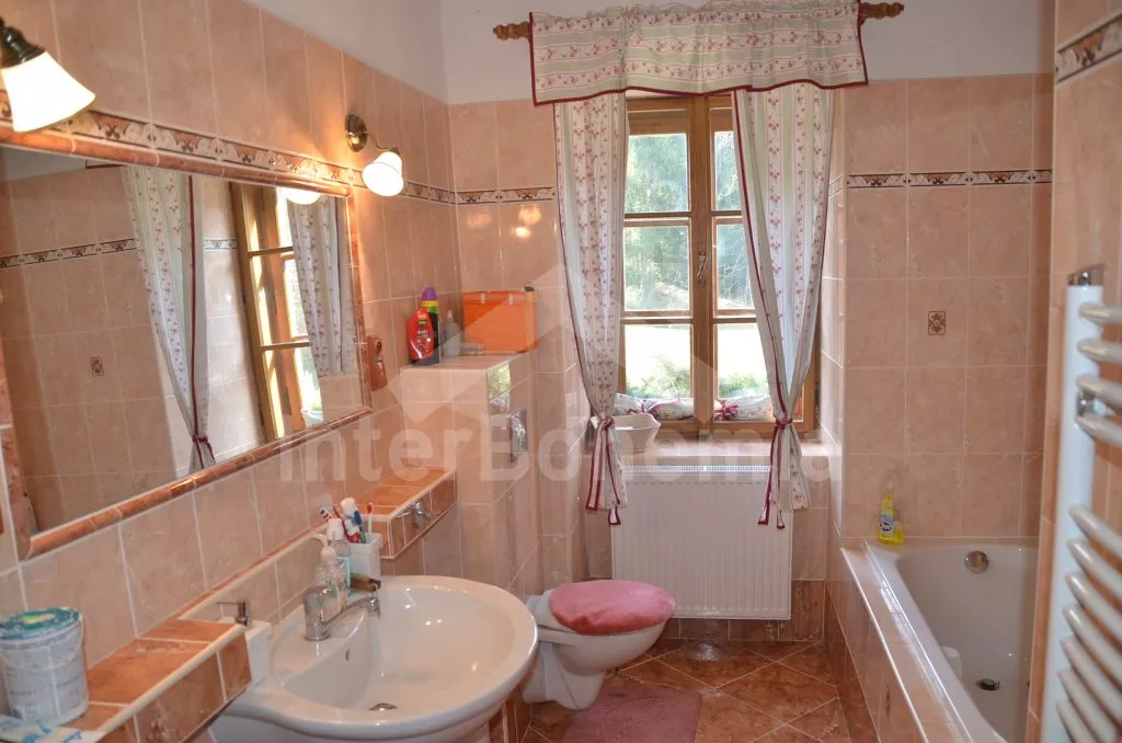 Fantastisch landhuis! Unieke accommodatie voor veeleisende cliënten. Vrijstaand, in 2014 compleet verbouwd met het oog op details en het gebruik van natuurlijke materialen (steen, hout). U beschikt over twee separate huizen met een tuin, het geheel is omheind door muur. Uitstekend en smaakvol ingericht en zeer royaal opgezet - u bewoont ca 372 m2! Huis A: entrée, gang, royale hal met zitje in open verbinding met de woonkamer. Zithoek, satelliet TV, eethoek met 8-persoons eettafel, zitje, open haard. Deels open keuken met o.a. elektrische oven, koelkast, twee keramische kookplaten, vaatwasser, magnetron, waterkoker, afzuigkap. Badkamer met ligbad, wastafel en toilet. Boven is een overloop met zitje, tweede badkamer met douche, wastafel en toilet. Slaapkamer met een éénpersoons bed en toegang tot slaapkamer met een tweepersoons bed. Derde slaapkamer met een tweepersoons bed, zitje en TV met set-top-box. Prachtige kelder met tafel en stoelen en unieke oorspronkelijke gewelfde plafonds. Centrale houtverwarming. Huis B: entrée, woonkamer met zithoek, 4-persoons eettafel, open haard en open keuken met o.a. koelkast, twee keramische kookplaten, magnetron, waterkoker, afzuigkap. Boven is een royale hal met zitbank en TV met set-top-box, badkamer met douche, wastafel en toilet. Slaapkamer met een tweepersoons bed en twee éénpersoons bedden en een slaapkamer met een tweepersoons bed. Elektrische verwarming. U beschikt over tuinmeubelen, parasol, barbecue en kampvuurplaats. Voldoende parkeerruimte, garage en parkeerplaats voor 3 auto´s.