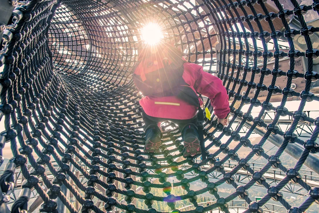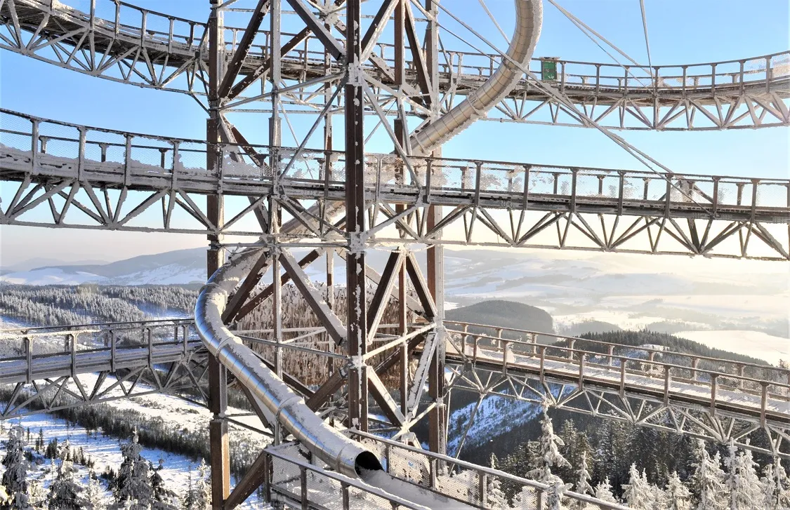◾️Tobogán dlouhý 100 metrů, který vede až k úpatí rozhledny. Má klopené zatáčky. Za nepříznivého počasí je uzavřena.