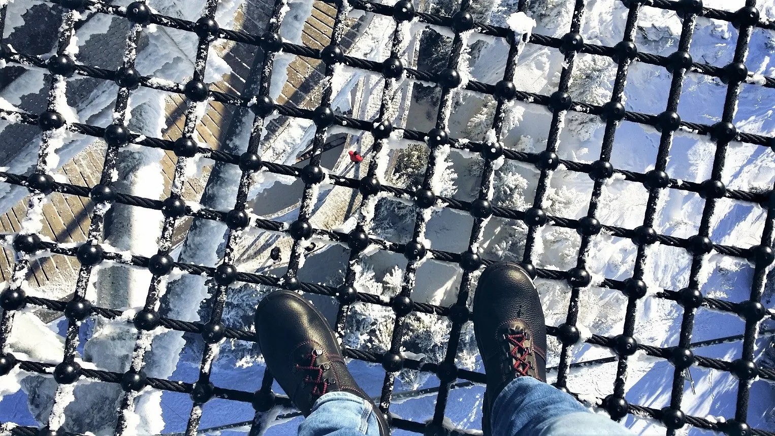 ◾️Zasíťovaný kus podlahy s názvem kapka, kde se můžete podívat až dolů.